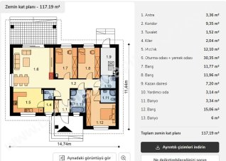 Not: İncelediğiniz ürün görselinde opsiyonel uygulamalar bulunabilir. Evler özel bir müşteri talebi olmadığı sürece standartlara göre üretilmektedir. Bu nedenle sözleşmenizdeki görünüm, teknik çizim ve özellikleri incelemenizi öneririz.