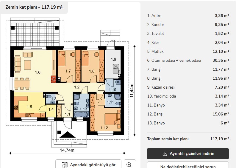 3+1 çelik konstrüksiyon ev planındaki 118 m² Karadeniz ev modeli de bahsi geçen güvenli evler arasında yer alıyor.