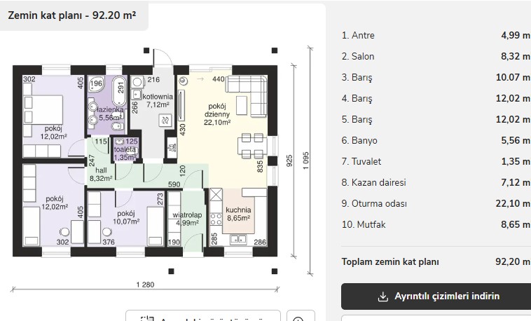 3+1 çelik konstrüksiyon ev planındaki 93 m² Karadeniz ev modeli de bahsi geçen güvenli evler arasında yer alıyor.