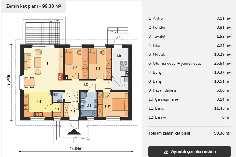 3+1 çelik konstrüksiyon ev planındaki 100 m² Karadeniz ev modeli de bahsi geçen güvenli evler arasında yer alıyor.