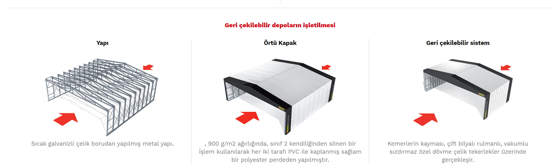 Akordiyon Çadır Depolarımız sabit veya ihtiyacınıza göre mobil olarak manuel açılır kapanır ve otomatik açılır kapanır sistemler olarak yapılabilir.