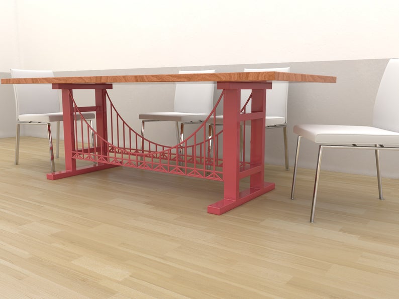 Yemek masası tabanı endüstriyel stil "Köprü" tasarımı. Avrupa Birliği'nde el yapımı benzersiz model